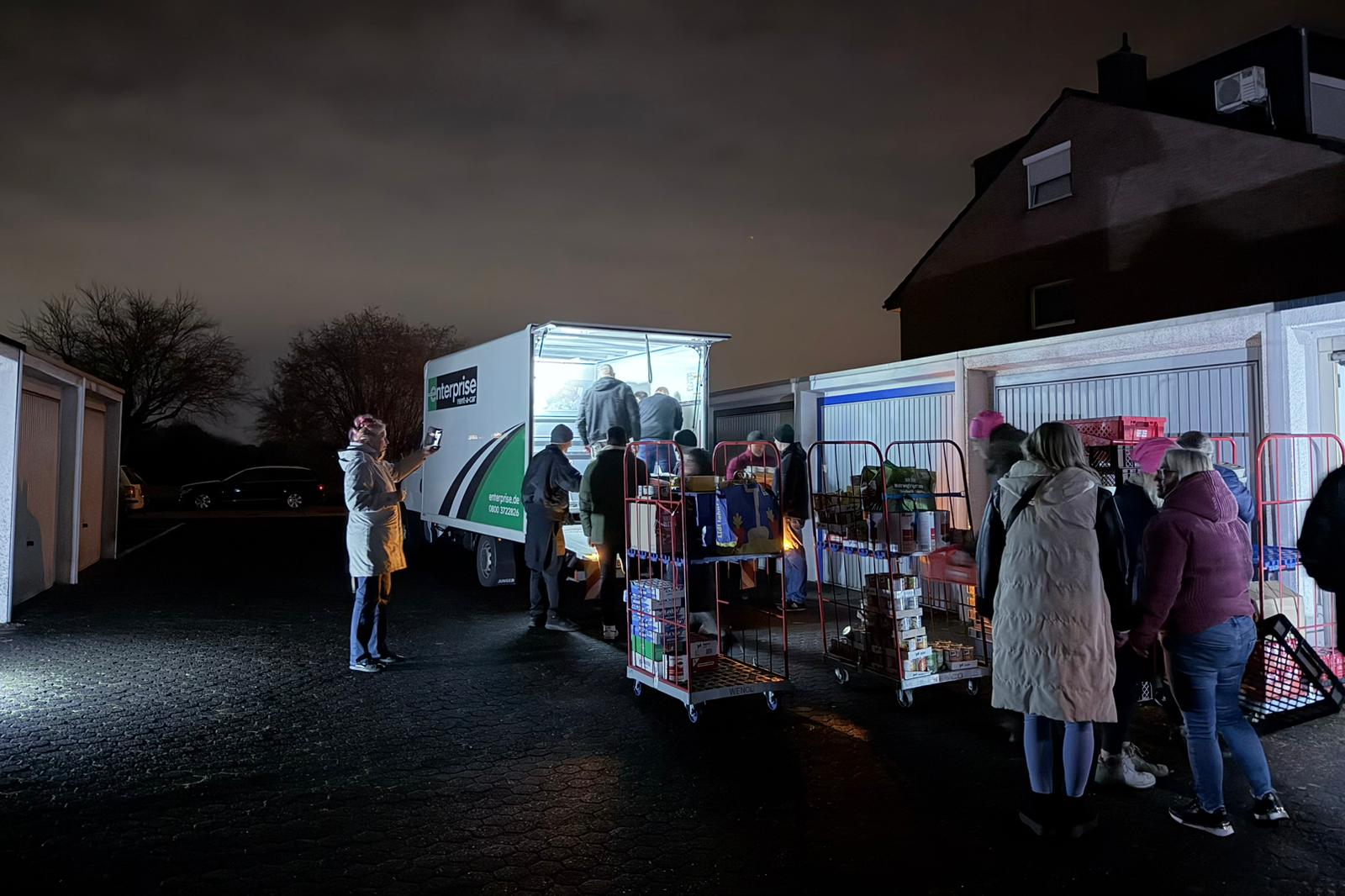 Dosenravioli, verschiedene Suppen, passierte Tomaten, Konserven, Rotkohl, Apfelmus, Bockwürstchen, Gewürzgurken, Hotdog Brötchen, Müsli/Cornflakes, H-Milch, Ketchup, Remoulade, Bürgersoße, Senf, Küchenrollen, Servietten, Einweggeschirr, Schokoriegel/Schokolade, Bifi, Chips, Hunde/Katzenfutter in Dosen, Cola/Fanta, Wärmflaschen, Fußwärmer, Rucksäcke, Jogginghosen, Feuchttücher, kleine Verbandstaschen, Taschenlampen, Fleecedecken, Zelte, Isomatten, neu verpackte Unterwäsche.